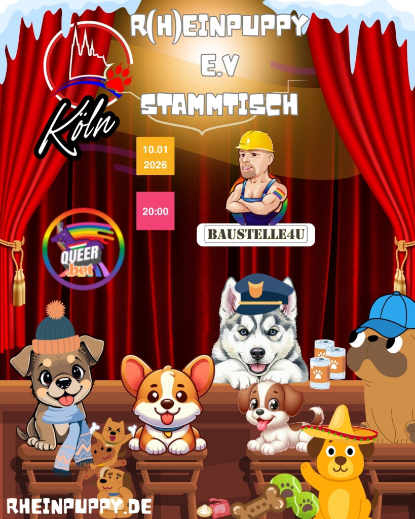 R(h)einpuppy 10.01.2026 Philipp Görny No Comment 48 Views Teilen #humanpuppy #humanpuppyplay #puppy #puppyplay #pupplaycommunity #humanpups #germanpup #germanpuppy #lgbt #gaypride #gaypup #pup #humanpupplay #pupplay #instapuppy #gaypupplay #gay #bi #lesbisch #transgender #queer #lgbtcommunity #lgbt #pride#rheinpuppy #rheinpuppys #baustelle4u #stammtisch #puppystammtisch